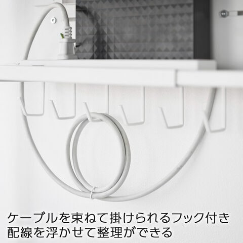 フック付き余ったケーブルを束ねて整理できる便利なフック付きで、配線も浮かせられます。