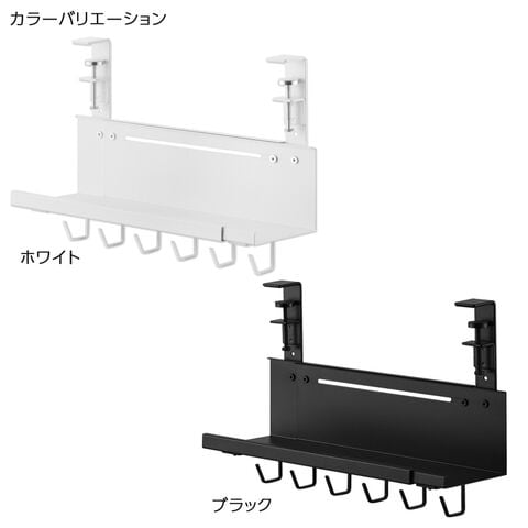 山崎実業 smart スマート 伸縮 デスク下ケーブルトレー ホワイト 10416 / ブラック 10417 | デスク収納 デスク下 収納トレー 浮かせる 収納 PC周り 整理 サイズ調節 クランプ ネジ式 モデム ルーター ケーブル ねじ止め フック付き 延長ケース 白 黒