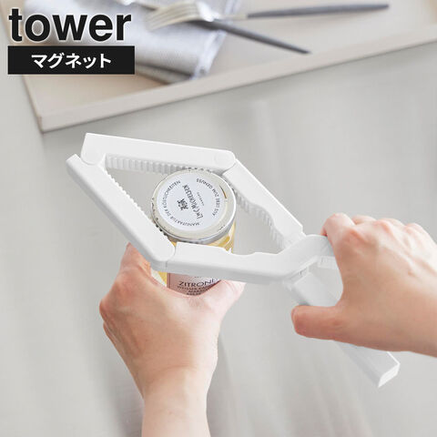 山崎実業 tower タワー 軽い力で開けられる マグネットキャップオープナー ホワイト 10430 / ブラック 10431 | オープナー マグネット キャップ ビン ペットボトル 缶 プルタブ ボトル フタ ジャム瓶 キッチン 介護 蓋開け ネイル 高齢者 女性 子供 白 黒