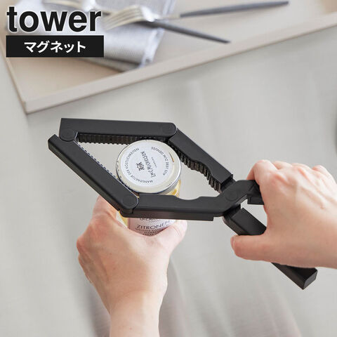 山崎実業 tower タワー 軽い力で開けられる マグネットキャップオープナー ホワイト 10430 / ブラック 10431 | オープナー マグネット キャップ ビン ペットボトル 缶 プルタブ ボトル フタ ジャム瓶 キッチン 介護 蓋開け ネイル 高齢者 女性 子供 白 黒