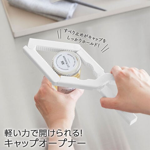 さまざまなサイズの蓋に対応し、軽い力で簡単に開けられるキャップオープナー。