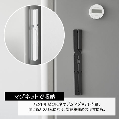マグネットでスリムに収納ハンドル部分にはネオジムマグネットが内蔵。冷蔵庫の横などに貼り付けて、すっきり収納できます。