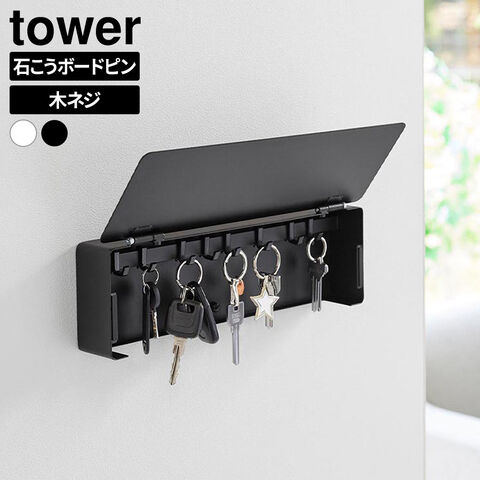 山崎実業 tower タワー 壁付けキーフック ロング ホワイト 10344/ ブラック 10345 | キーフック 木ネジ 石膏ボードピン 鍵掛け 鍵かけ 壁につける 玄関 エントランス小物 車 バイク 自転車 お家 倉庫 鍵 収納