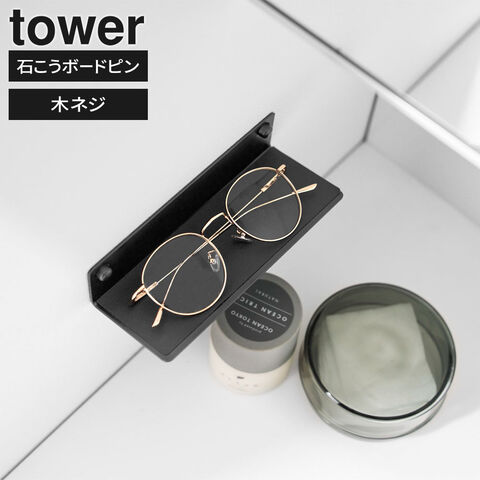 山崎実業 tower タワー 壁付け メガネラック ホワイト 10446 / ブラック 10447 | 洗面収納 めがねラック 眼鏡 洗面 脱衣室 ベッドサイド 石膏ボードピン取付 マグネットケーブルホルダー スマホラック 小物置き 一時置き 収納 賃貸 壁面 シンプル 白 黒