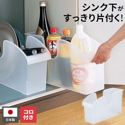 シンク下 収納 シンク下ボックス M ホワイト/クリア 1個/3個 | 収納ケース フライパン 収納 コロ付き ストッカー 流し下 収納 流し台 収納 鍋 収納 鍋蓋 収納 調味料 収納 ボトル 収納 白 キッチン収納 整理