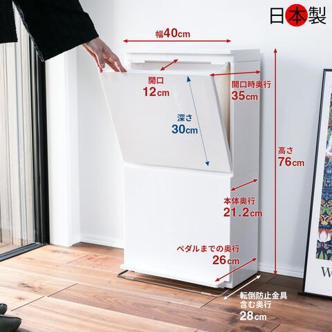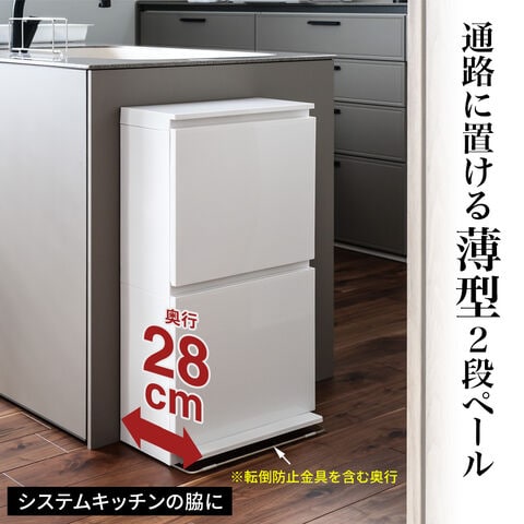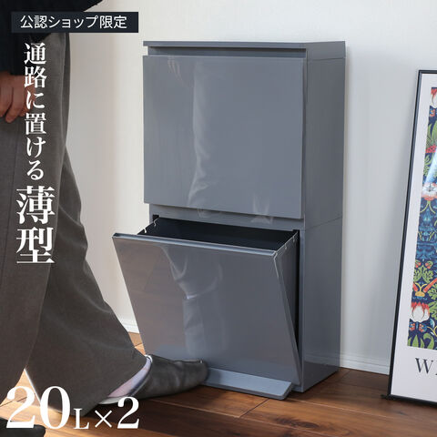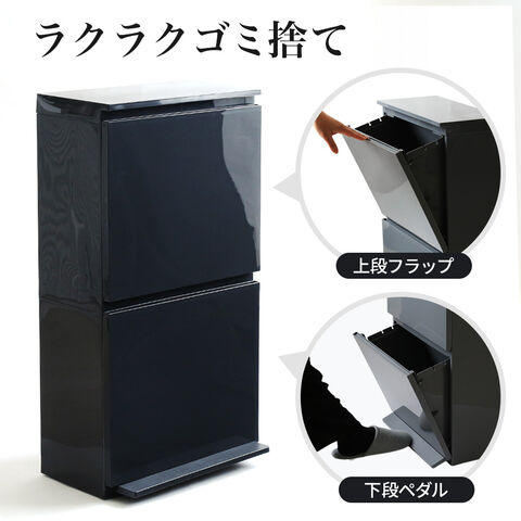 ごみ箱 分別ペダル2段ワイド 20L×2 ホワイト/グレー/ブラック 公認ショップ限定 | 分別 ダストボックス 2段 縦型 ペダル式 日本製 白 おしゃれ 薄型ワイド 28cm 20L+20L 収納 モノトーン