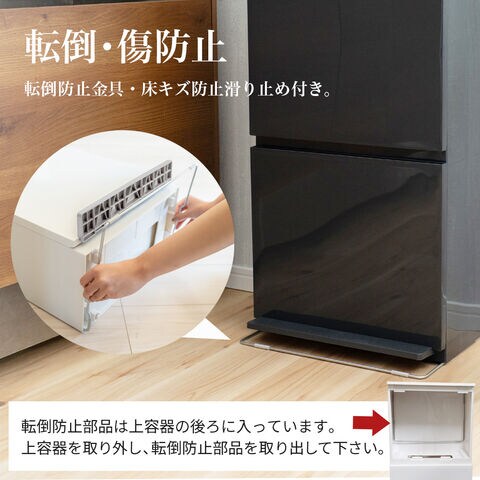 転倒防止金具付き転倒防止金具、キズ防止スベリ止め付き。
