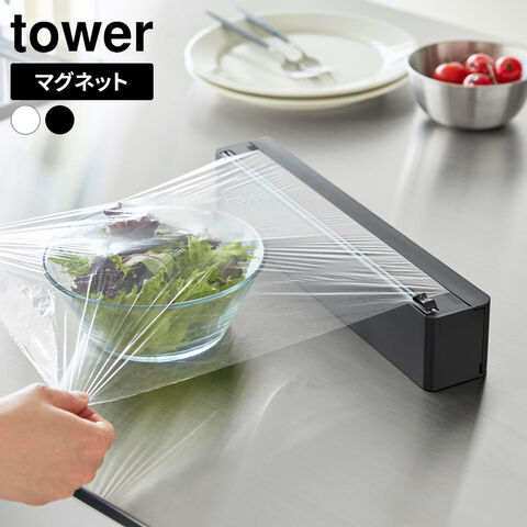 山崎実業 tower タワー マグネットラップケース スライドカッター付き ホワイト 10658/ ブラック 10659 | ラップケース ラップ マグネット 磁石 カッター付き 白 黒 アルミホイル 30cm おしゃれ 収納 シンプル スライドカッター 置き型