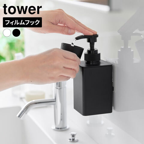 山崎実業 tower タワー フィルムフック マウスウォッシュディスペンサー&ミニタンブラー ホワイト 10539/ ブラック 10540 | うがいコップ マウスウォッシュ 詰め替え 小さめ カップ 浮かせる フィルムフック ディスペンサー おしゃれ コップ マグネット コンパクト シンプル 洗面
