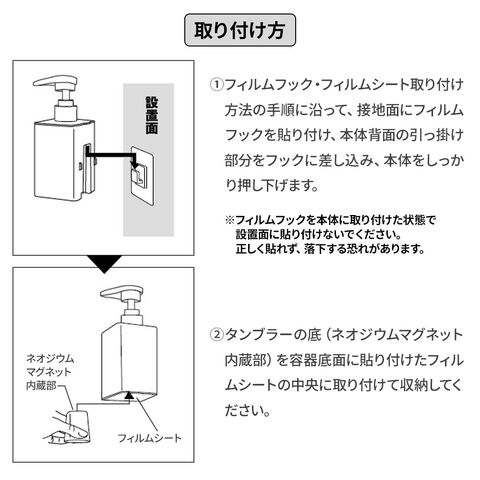 ご注意フィルムフック・フィルムシートをはがす際は、接着面の下側の端部からはがしてください。