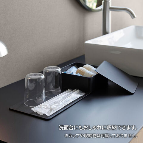 山崎実業 tower タワー トレイ 収納ボックス付きトレー ホワイト 10795/ ブラック 10796 | ディスプレイトレー カウンタートップ 箱付き BOX 収納 おしゃれ 小物 入れ物 インテリア トレイ ディスプレー お盆 スチール のせる 見せる収納 ホテル仕様