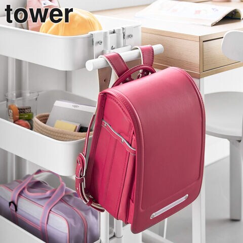 山崎実業 tower タワー スチールワゴン横 ランドセル&リュックハンガー ホワイト 10771 / ブラック 10772 | ランドセル収納 スチールワゴン用 リュックハンガー ワゴン横 調節ねじ カバン収納 ワゴン 吊り下げ 引っ掛け ランドセルハンガー