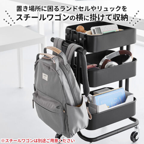 スチールワゴンの側面に取り付けて、ランドセルやリュックを掛けて収納できるハンガー。