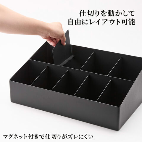 仕切りを動かして自由にレイアウト仕切りはマグネット付きで、収納物に合わせて自由に配置できます。