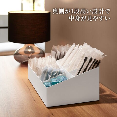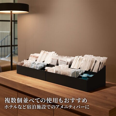 ホテルなどの宿泊施設のアメニティバーで、歯ブラシなどのアメニティグッズを整理して並べられます。