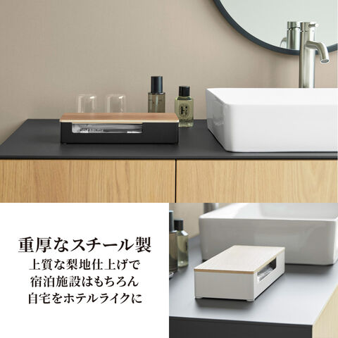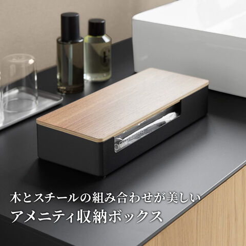 山崎実業 RIN リン 蓋付き アメニティ&小物収納 ブラウン 10602 / ナチュラル 10603 | アメニティ 収納 小物入れ 仕切り付き 木製 ふた付き トレー ホテル仕様 アメニティボックス 収納ボックス 旅館 ホテル カフェ 洗面所 おしゃれ