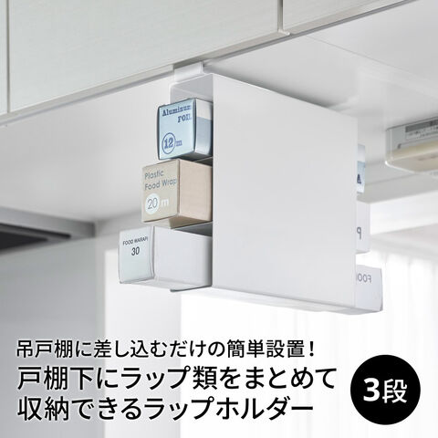 戸棚下に差し込むだけで設置できる、3段タイプのラップホルダー。