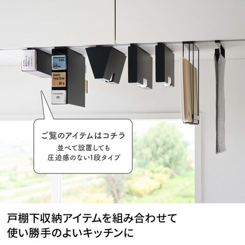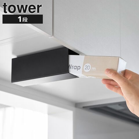 山崎実業 tower タワー 戸棚下 ラップホルダー ホワイト 10507 / ブラック 10508 | ラップ 収納 吊り下げ 吊戸棚 棚板 1.4~2センチ アルミホイル クッキングシート 内寸5.4センチ キッチン 戸棚下 賃貸 白 黒