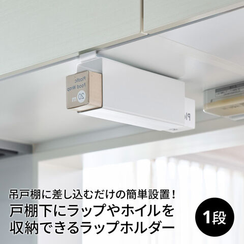 戸棚下に差し込むだけで設置できる、1段タイプのラップホルダー。