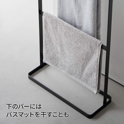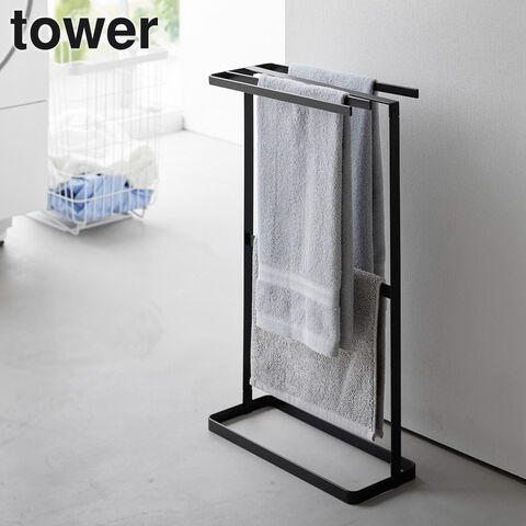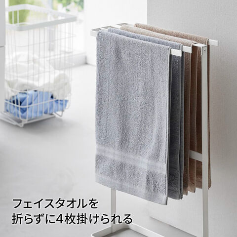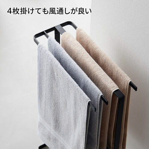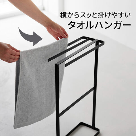 山崎実業 tower タワー 横から掛けられる タオルハンガー ホワイト 10549 / ブラック 10550 | タオル干し スタンド 浴室 スリム フェイスタオル バスマット 4枚 掛けやすい 省スペース おしゃれ 白 黒