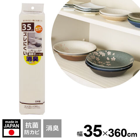 本体に消臭・抗菌・防カビ加工、裏面にズレにくい素材を使用した、棚に敷いて使う収納シート【幅35cm】。