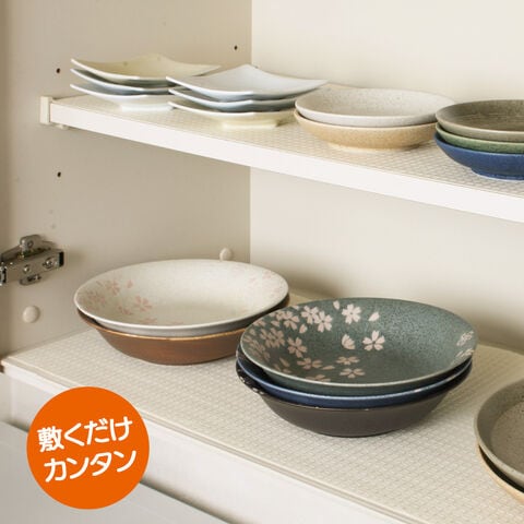 クッション性があり、食器棚の棚板や引き出しなどに付くキズを防ぎます。