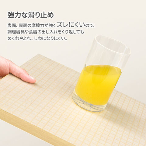 表面、裏面の摩擦力を上げてズレにくさを強化したシートで、めくれやよれ、しわになりにくいシートです。