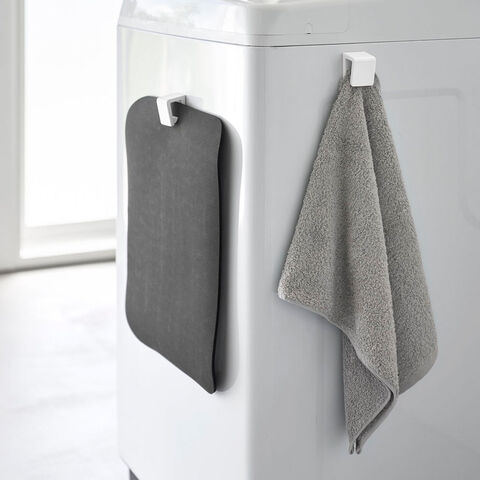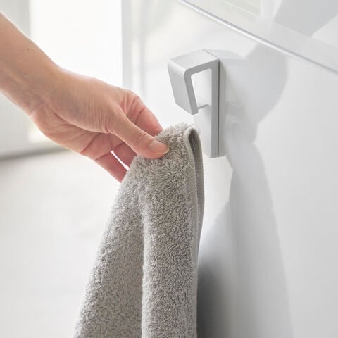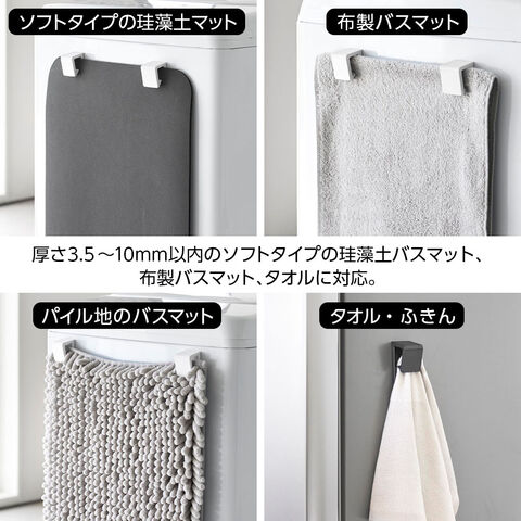 ソフト珪藻土マットや布製バスマット・タオルを洗濯機などのマグネットがつく壁面に吊るして収納できます。
