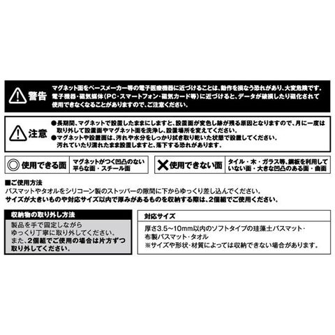 対応サイズ:厚さ3.5~10mm以内のソフトタイプの珪藻土バスマット・布製バスマット・タオル