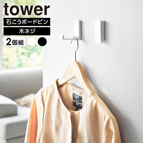 山崎実業 tower 壁付け折り畳みフック 2個組 ホワイト 10551 / ブラック 10552 | タワー 壁面 フック 収納 コート掛け バッグハンガー 白 黒 おしゃれ スリム コンパクト ウォールフック 石膏ボード 木ネジ