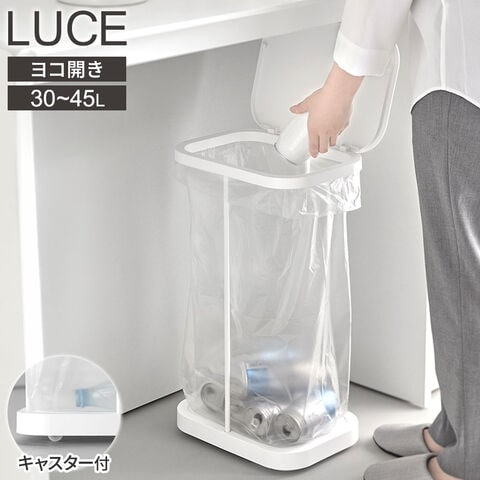 山崎実業 LUCE ルーチェ キャスター付き 分別ゴミ袋ホルダー 縦開き/横開き ホワイト/ブラック | ごみ箱 キッチン ダストボックス 分別 フタ付き スリム シンプル おしゃれ コロ付き