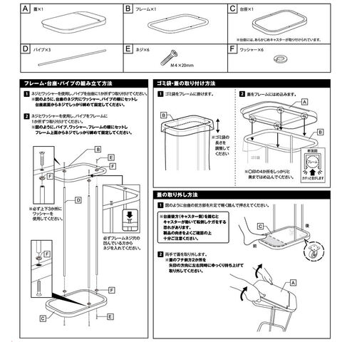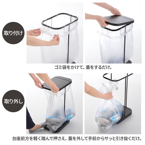 フレームにゴミ袋を掛けて上から蓋をするだけで簡単に設置できるゴミ箱。