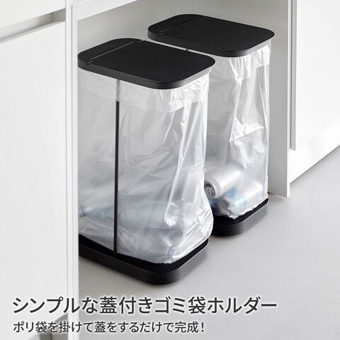山崎実業 LUCE ルーチェ キャスター付き 分別ゴミ袋ホルダー 2個セット 縦開き/横開き ホワイト/ブラック | ごみ箱 キッチン ダストボックス 分別 フタ付き スリム シンプル おしゃれ コロ付き