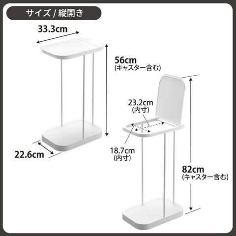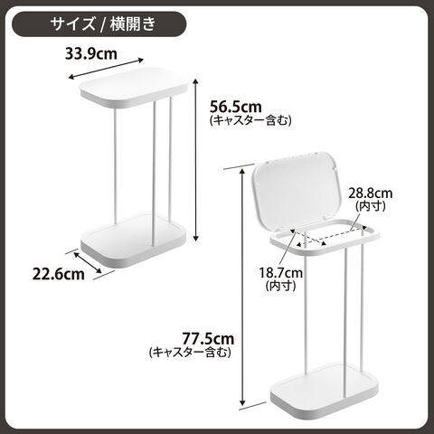 スペック1個あたりサイズ(約):22.6×33.3×高さ56cm 蓋開口時最大高さ/82cm 蓋開口部/18.7×23.2cm