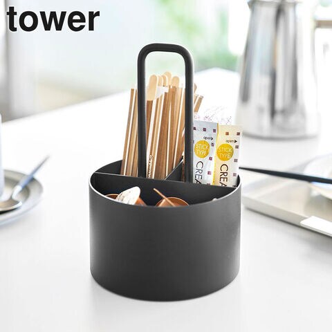 山崎実業 tower タワー シュガー&ミルクオーガナイザー ホワイト 10807/ ブラック 10808 | 小物収納 ケース コーヒー お茶 スティックシュガー ミルク カフェ オフィス ドリンクコーナー キッチン おもてなし 来客時