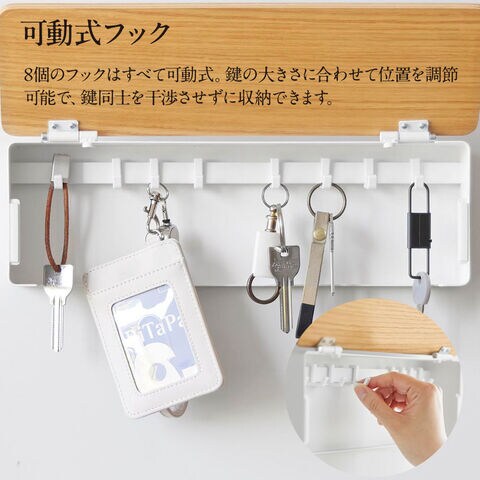 可動式フックが8個付属しており、お好みの位置に調整して取り付けられます。