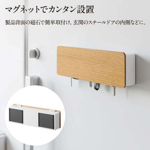 山崎実業 RIN リン マグネットキーフック ロング ブラウン10606/ナチュラル10607 | キーフック 磁石 玄関 ドア 鍵掛け 鍵かけ 壁につける エントランス小物 車 バイク 自転車 お家 倉庫 鍵 収納