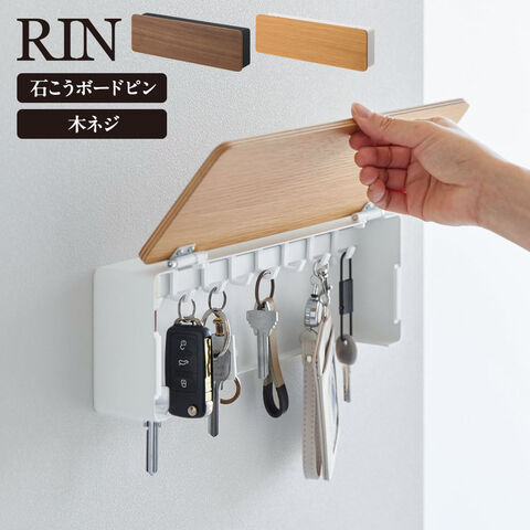 山崎実業 RIN リン 壁付けキーフック ロング ブラウン10608/ナチュラル10609 | キーフック 木ネジ 石膏ボードピン 鍵掛け 鍵かけ 壁につける 玄関 エントランス小物 車 バイク 自転車 お家 倉庫 鍵 収納