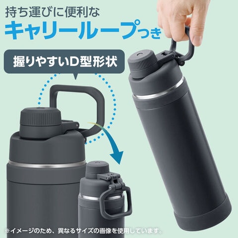 持ち運びに便利なキャリーループが付いた、スポーツタイプのステンレスボトル。【2000ml】