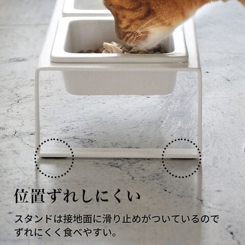 お手入れしやすい陶器製のフードボウルはスタンドから取り外し可能。ご飯が終わったら簡単に洗えます。