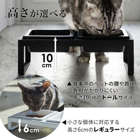 高さ10cmのトールサイズと、小さな犬猫も食べやすい高さ6cmのレギュラーサイズから選べます。