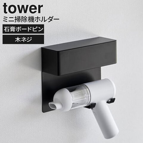 山崎実業 tower タワー 壁付けミニ掃除機ホルダー ホワイト 10787/ブラック 10788 | 壁面収納 壁掛け 石こうボードピン フック ホルダー 浮かせる 掃除機 クリーナー ハンディクリーナー