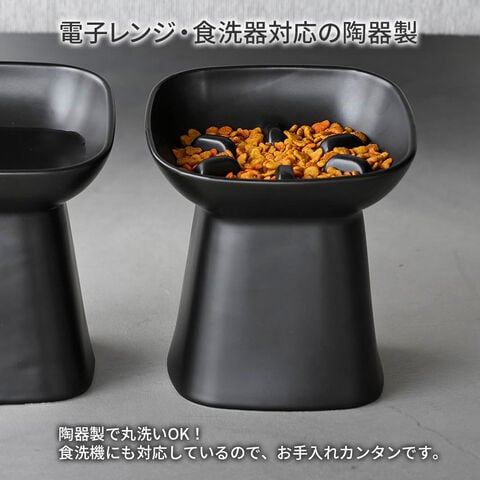 山崎実業 nooks ヌークス 早食い防止 陶器ペットフードボウル 斜め 高さ17cm 容量250ml ホワイト 10559 / ブラック 10560 | ペット 食器 餌入れ エサ 食器台 白 黒 猫 犬 台 陶器 高さ調節 傾斜 斜め おしゃれ 高さがある猫皿 餌皿 シンプル モノトーン 水