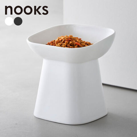 山崎実業 nooks ヌークス 食べやすい高さ 陶器ペットフードボウル 斜め 高さ17cm 容量350ml ホワイト 10561 / ブラック 10562 | ペット 食器 餌入れ エサ 食器台 白 黒 猫 犬 台 陶器 高さ調節 傾斜 斜め おしゃれ 高さがある猫皿 餌皿 シンプル モノトーン 水