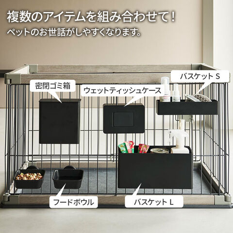 普段お使いのケージやサークルに取り付けできる密閉ゴミ箱。
