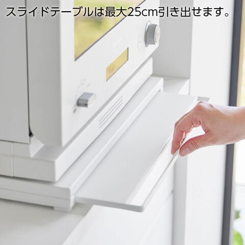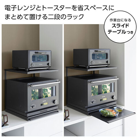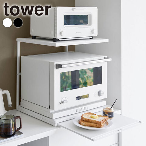 山崎実業 tower スライドテーブル付きキッチン家電下ラック 2段 ホワイト 10652 / ブラック 10653 タワー | 家電収納 レンジラック トースターラック 電子レンジ 炊飯器 レンジ台 カウンター上 レンジ下 キッチン収納 白 黒