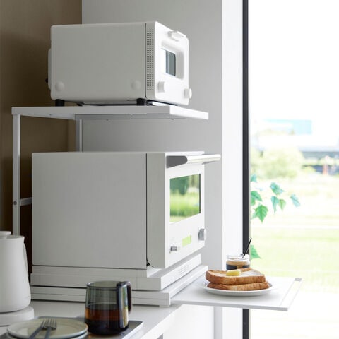山崎実業 tower スライドテーブル付きキッチン家電下ラック 2段 ホワイト 10652 / ブラック 10653 タワー | 家電収納 レンジラック トースターラック 電子レンジ 炊飯器 レンジ台 カウンター上 レンジ下 キッチン収納 白 黒のレビュー