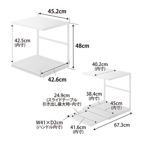 内寸(約):上棚/幅45.2×奥行40.2cm 置き台/幅45×奥行38.4×高さ42.5cm スライドテーブル/幅41.6×奥行24.9cm(最大)