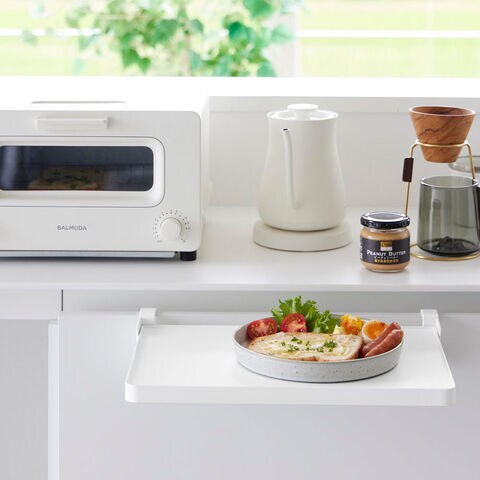 キッチンで配膳の準備や調理小物の仮置きに便利。