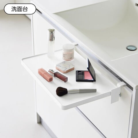 洗面台でメイク中のコスメ置き場としても、入浴時のタオルやパジャマの一時置きにも便利です。